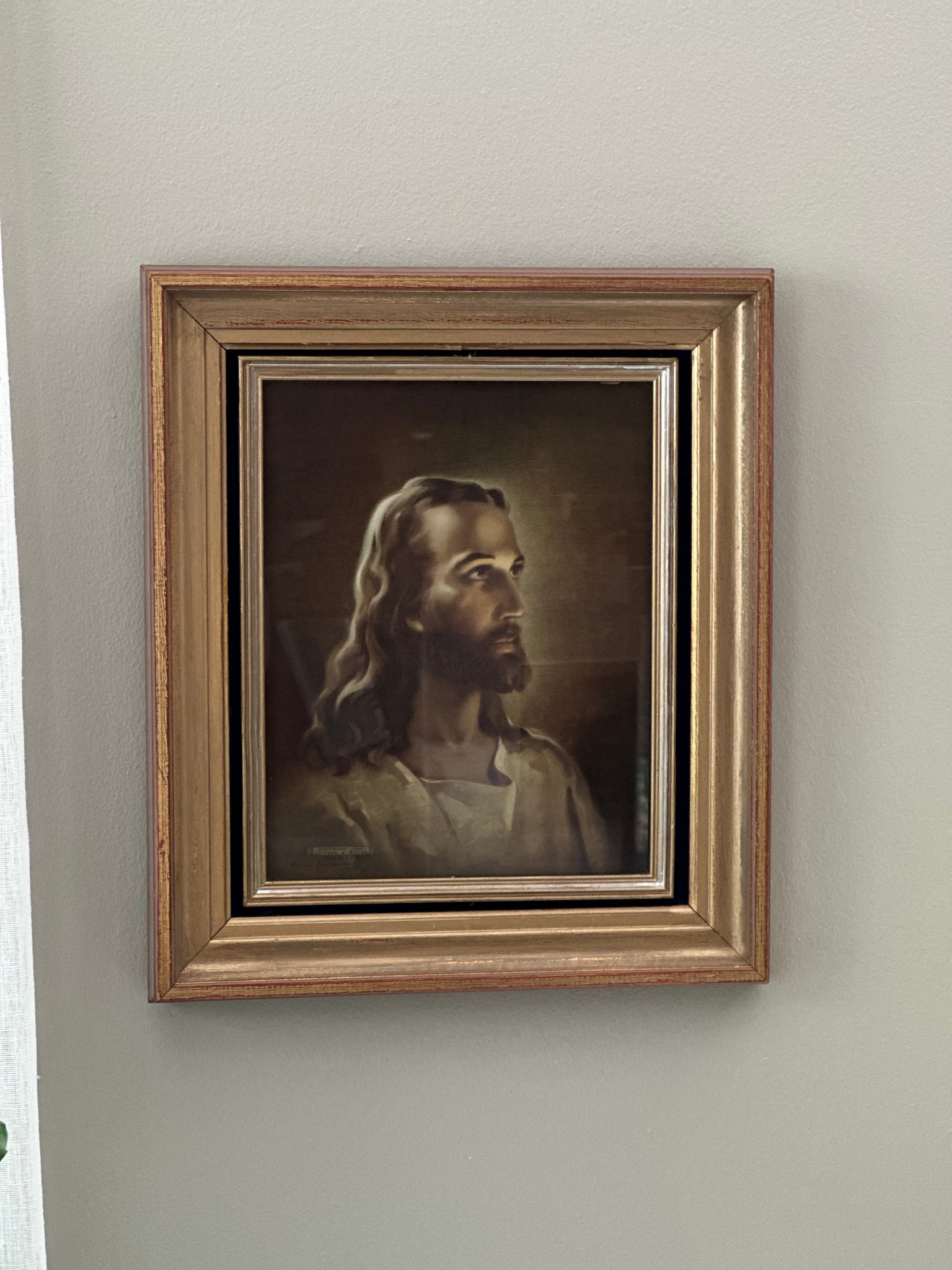 This particular portrayal became one of the most widely circulated Christian images of the mid-twentieth century. Produced and distributed internationally through religious publishers and print houses, it was cherished for its calm, compassionate expression and was commonly found in homes, chapels, and mission schools from the 1940s to the 1970s. Its soft realism and devotional mood made it one of the era’s most recognisable spiritual prints.