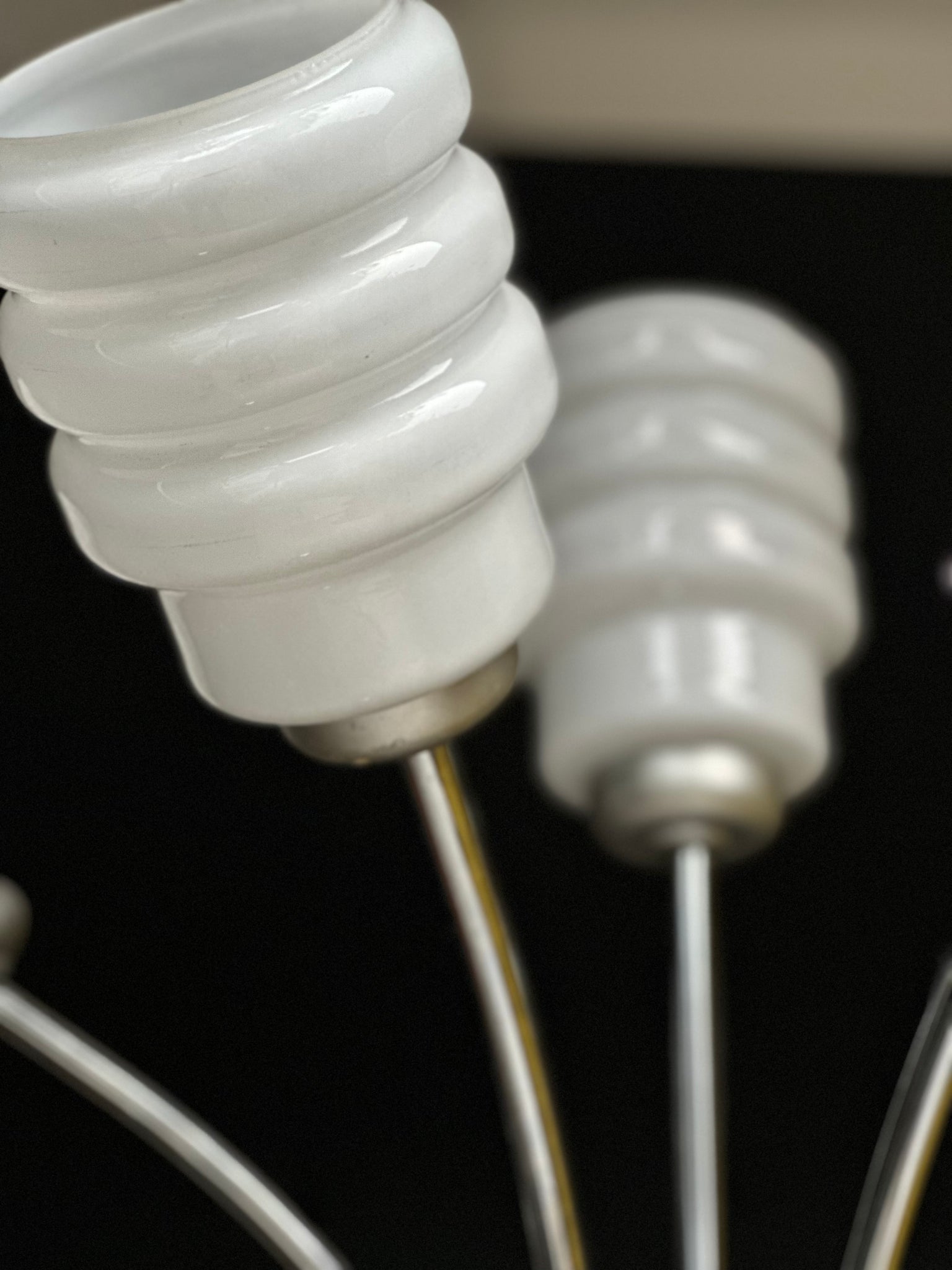 Standing tall, this lamp makes a dramatic statement in any space — perfect for adding ambient lighting to a lounge, reading corner, or alongside a sofa. Its multi-arm structure not only provides ample illumination but also creates a sense of movement and balance, making it as much a decorative feature as a lighting source.