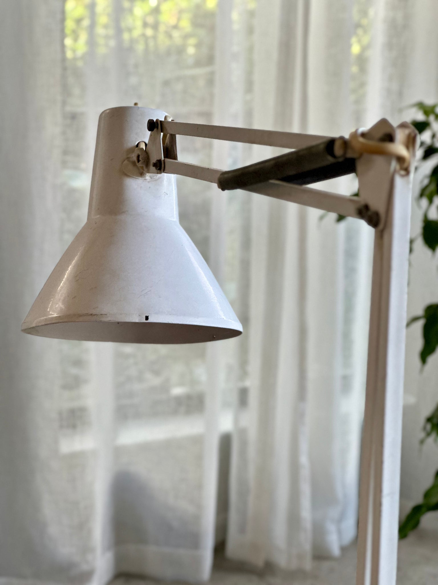 A Retro Angle-poise style clip-on desk lamp. This desk lamp has a clamp that can be added to the edge of a desk. It can be easily tilted and the shade moved to direct light in a desired area. In overall good vintage condition with age-related imperfections, marks etc.