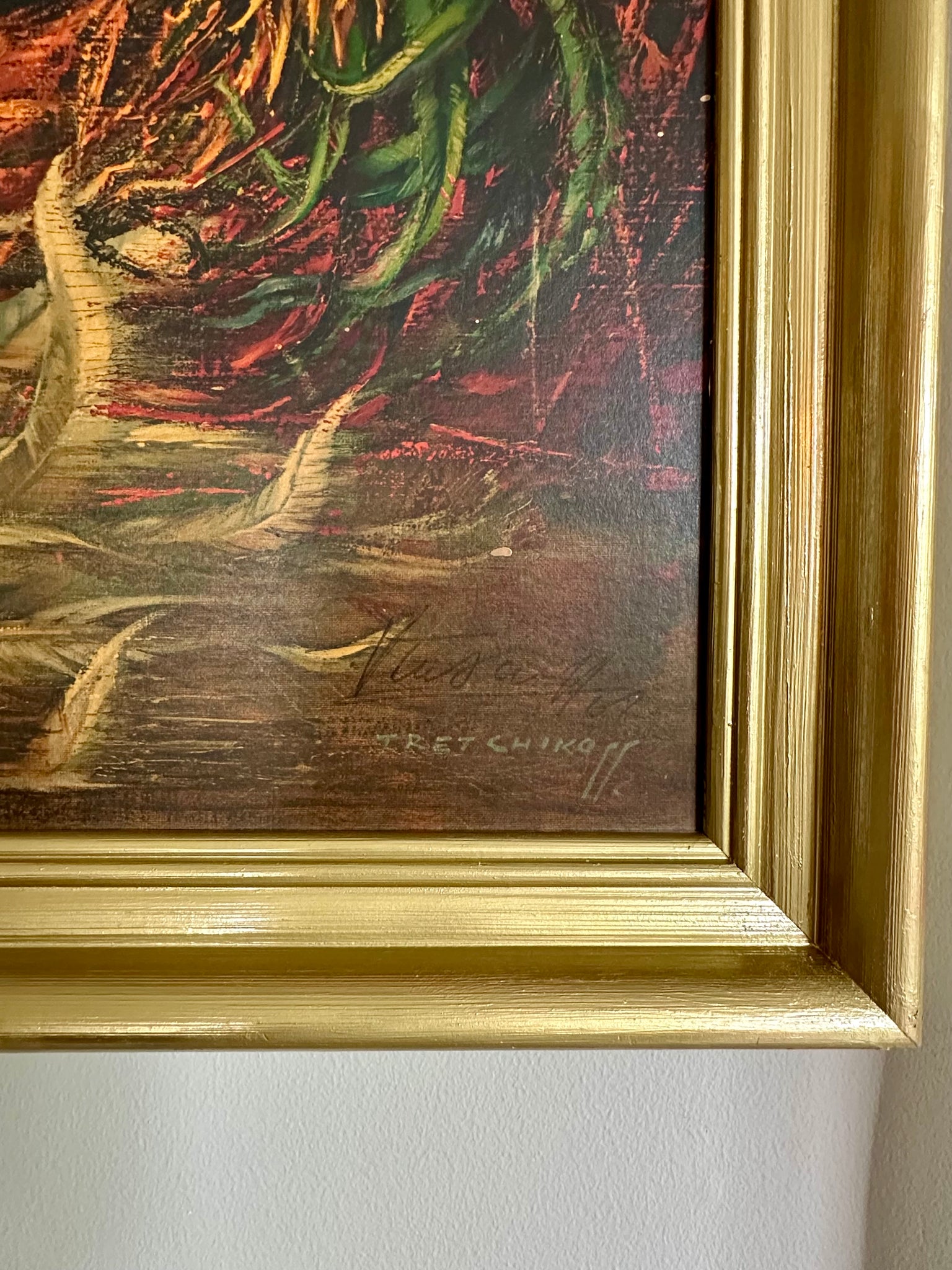 This is a rare double-signed original print, a collector’s gem from one of the most popular artists of the 20th century. Dubbed the "King of Kitsch," Tretchikoff achieved widespread acclaim in his time, and his works continue to be highly coveted today. Owning this piece offers both aesthetic appeal and a tangible connection to a significant chapter of art history.