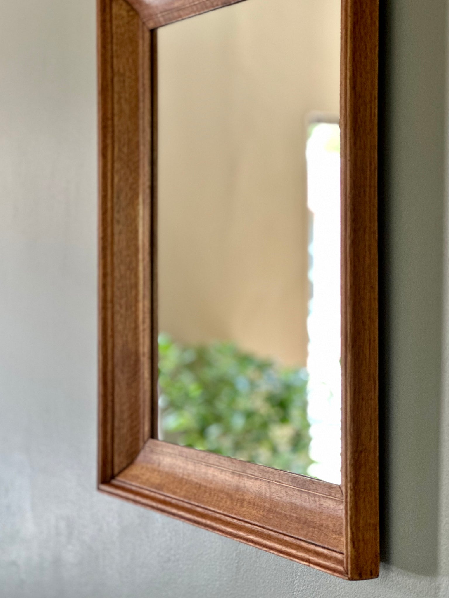 In good as-is cleaned condition, the mirror is in great condition — sturdy and well-maintained, showing gentle signs of age consistent with vintage pieces. Frame refreshed.