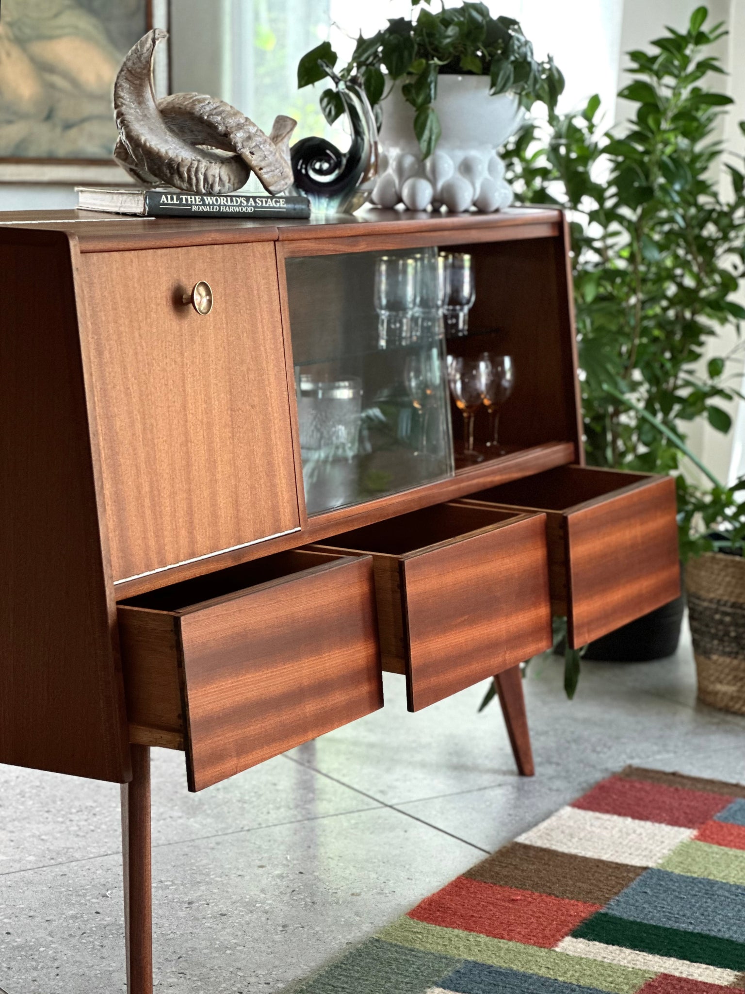A fabulous drinks cabinet that balances function and form with confident mid-century character.