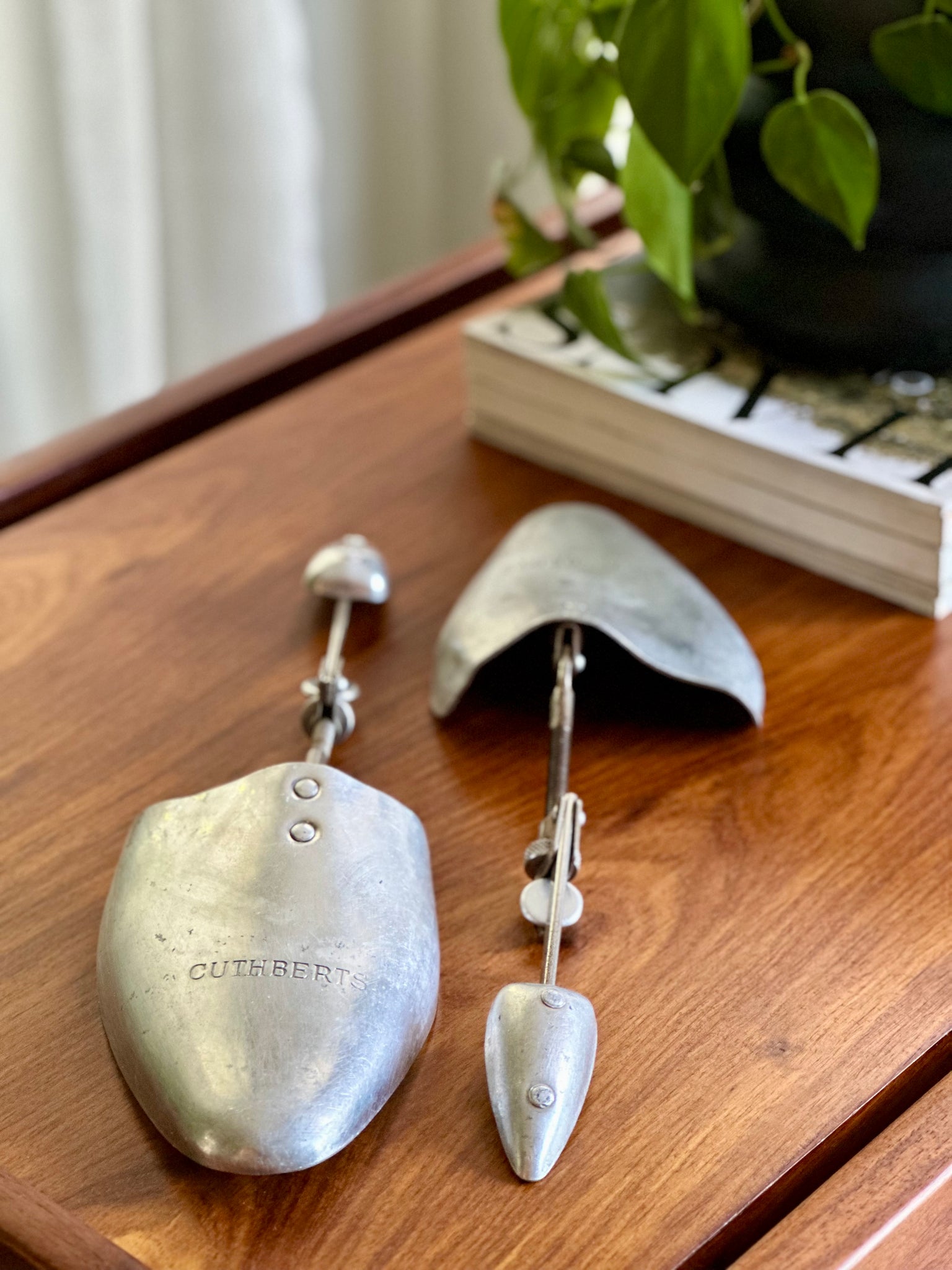 Both Interesting & Decorative. 4 Metal shoe stretchers, available separately. Slight Variation in size on the front parts most probably due to their age, but all marked Cuthberts 9x10 Medium on the inside.