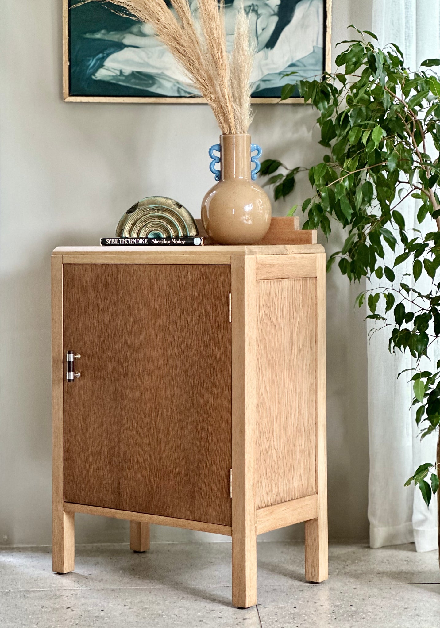 This small, but beautifully crafted McNamee cabinet is a refined example of South African craftsmanship, made from a combination of beech and oak that gives the piece both warmth and structural integrity. The natural timber tones are gently contrasted, allowing the grain to become part of the design rather than decoration.