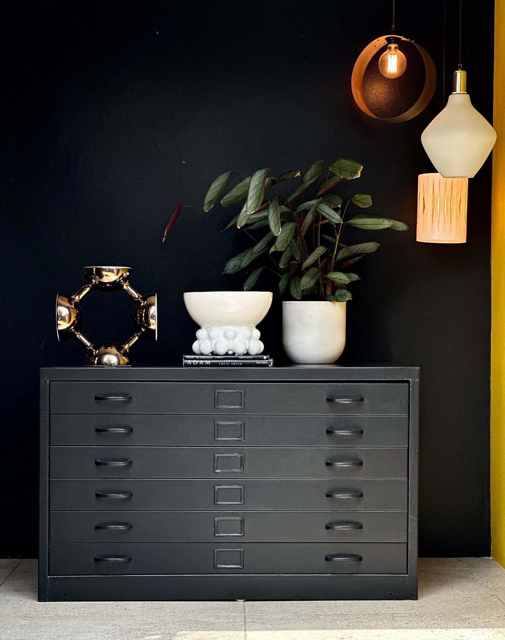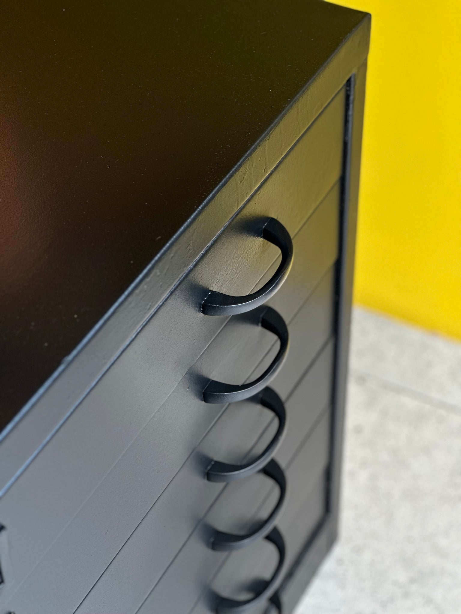 A striking six-drawer vintage architect's drawer set, restored with intention while honouring its industrial roots. Each drawer is fitted with a flip-down “holder” to keep the blueprints or paperwork intact.