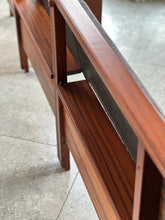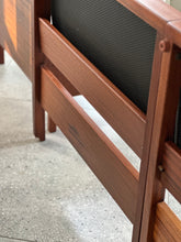DS Vorster was renowned for making excellent furniture with clean, straight lines. The original brass handles are still intact. The headboard consists of two sections that join together at the back.