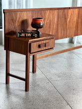 As with most Mid-Century pieces and a hallmark of the era, it is a combination of solid wood and a high-quality wood veneer. Veneer has a rich history in furniture design, is admired for its craftsmanship, durability, and aesthetic appeal and is a long and honorable tradition. The quality of the veneer's artistry was long-lasting; for this reason, it can be retouched or sanded and refinished.