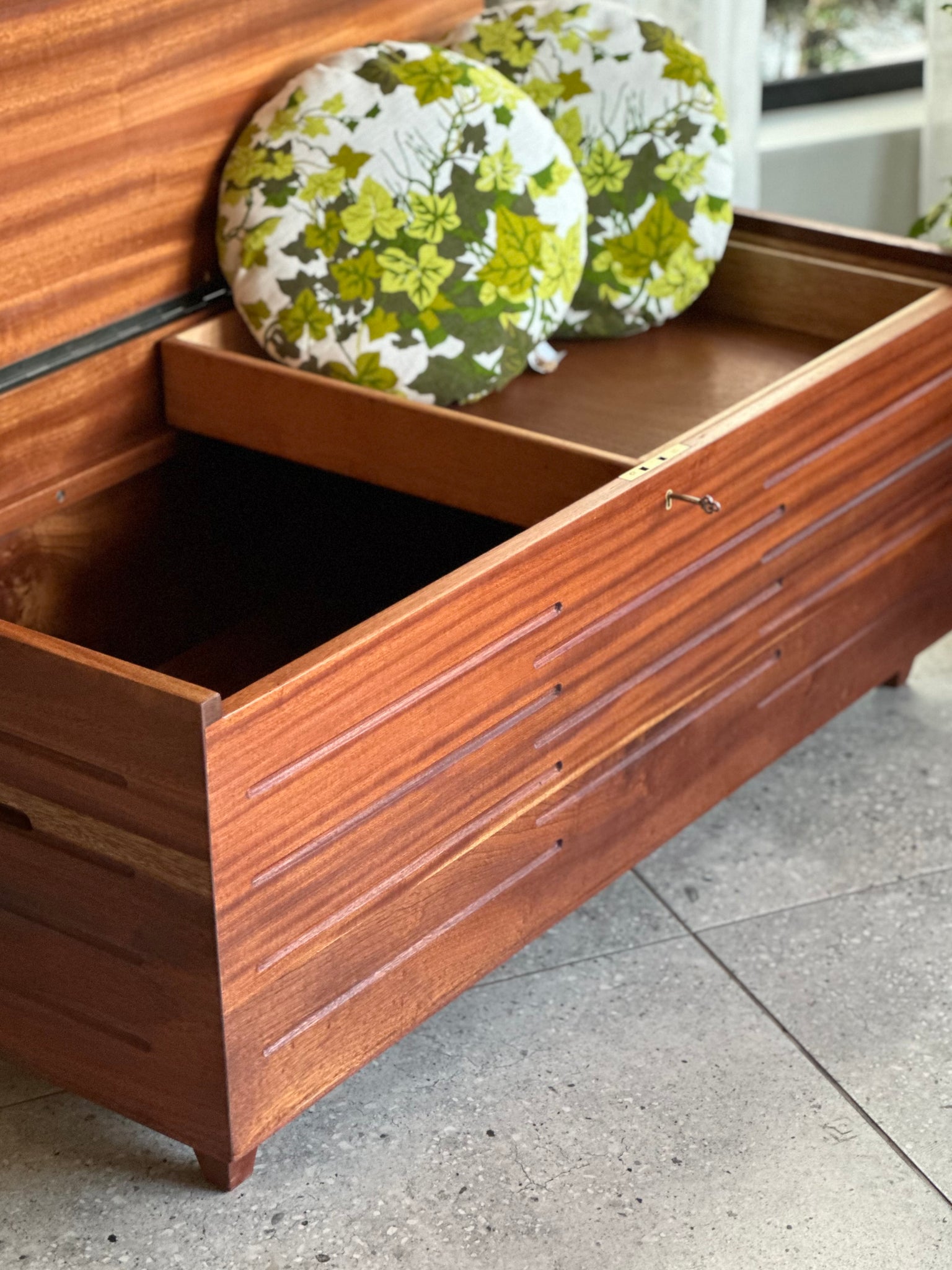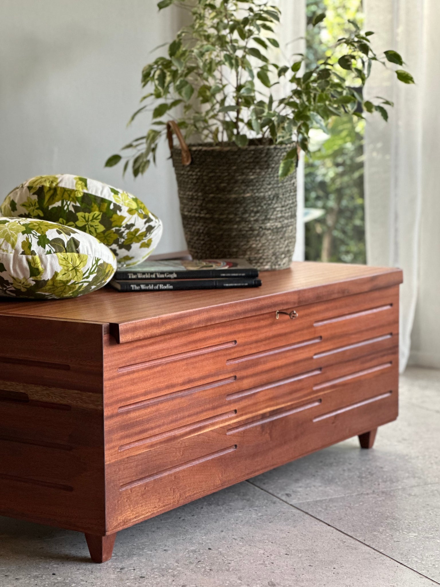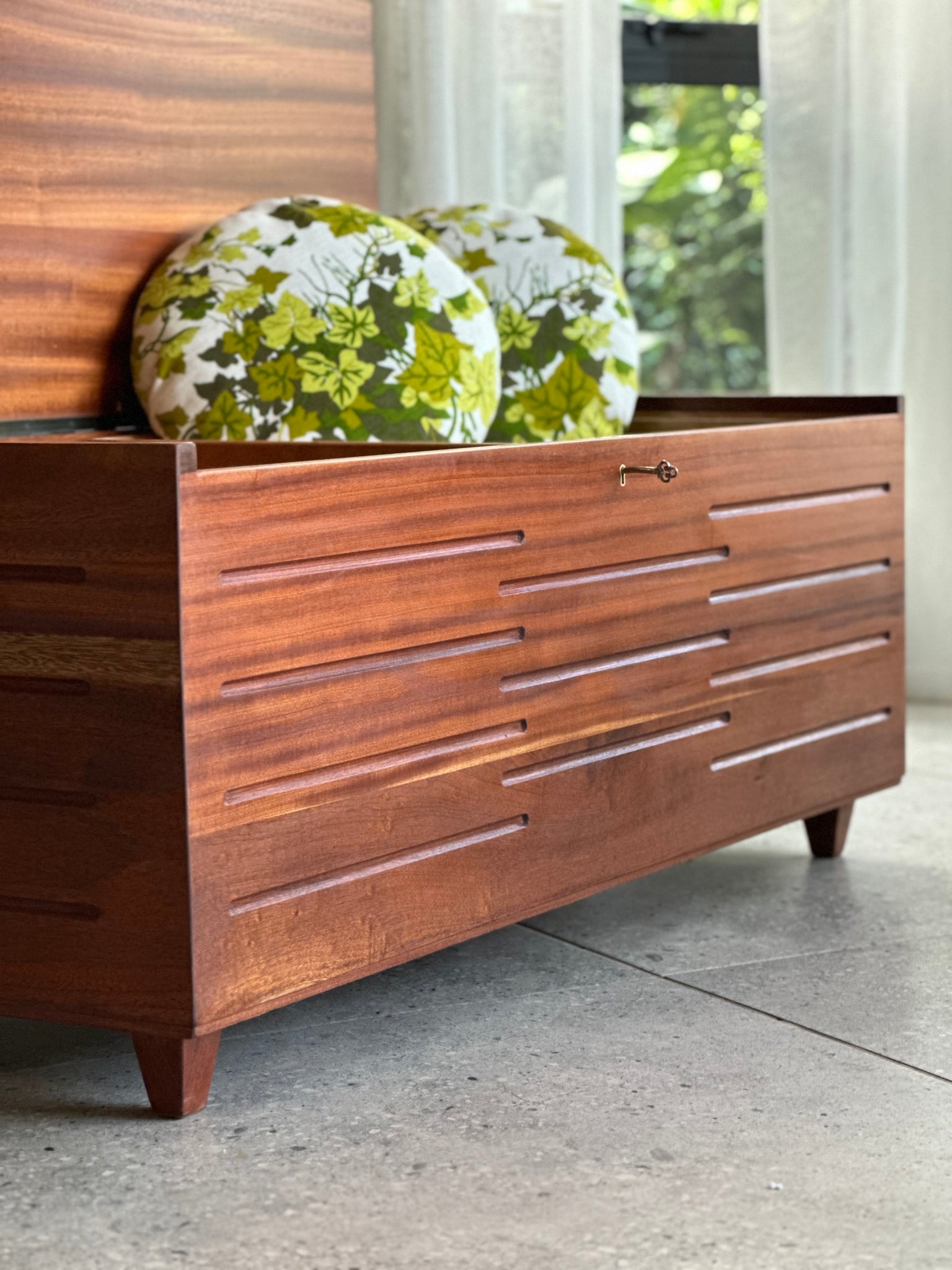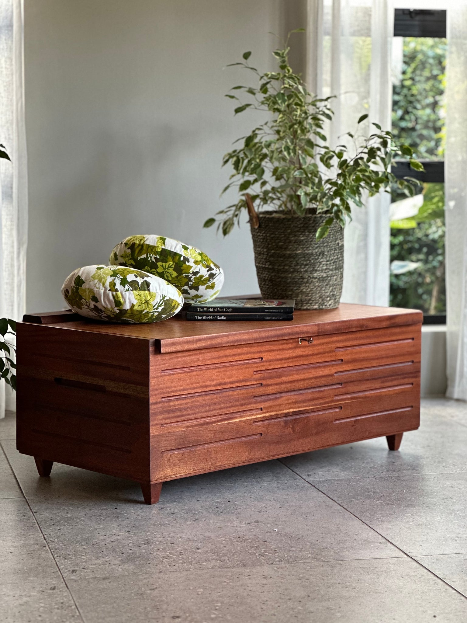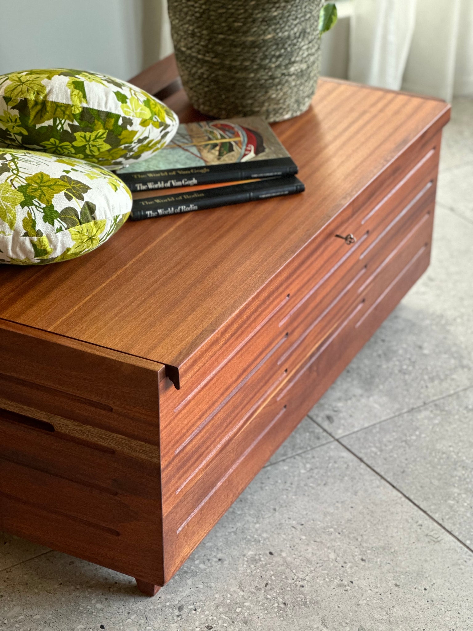 A stunning Mid-Century storage kist that is slightly in a Brutalist style. on.