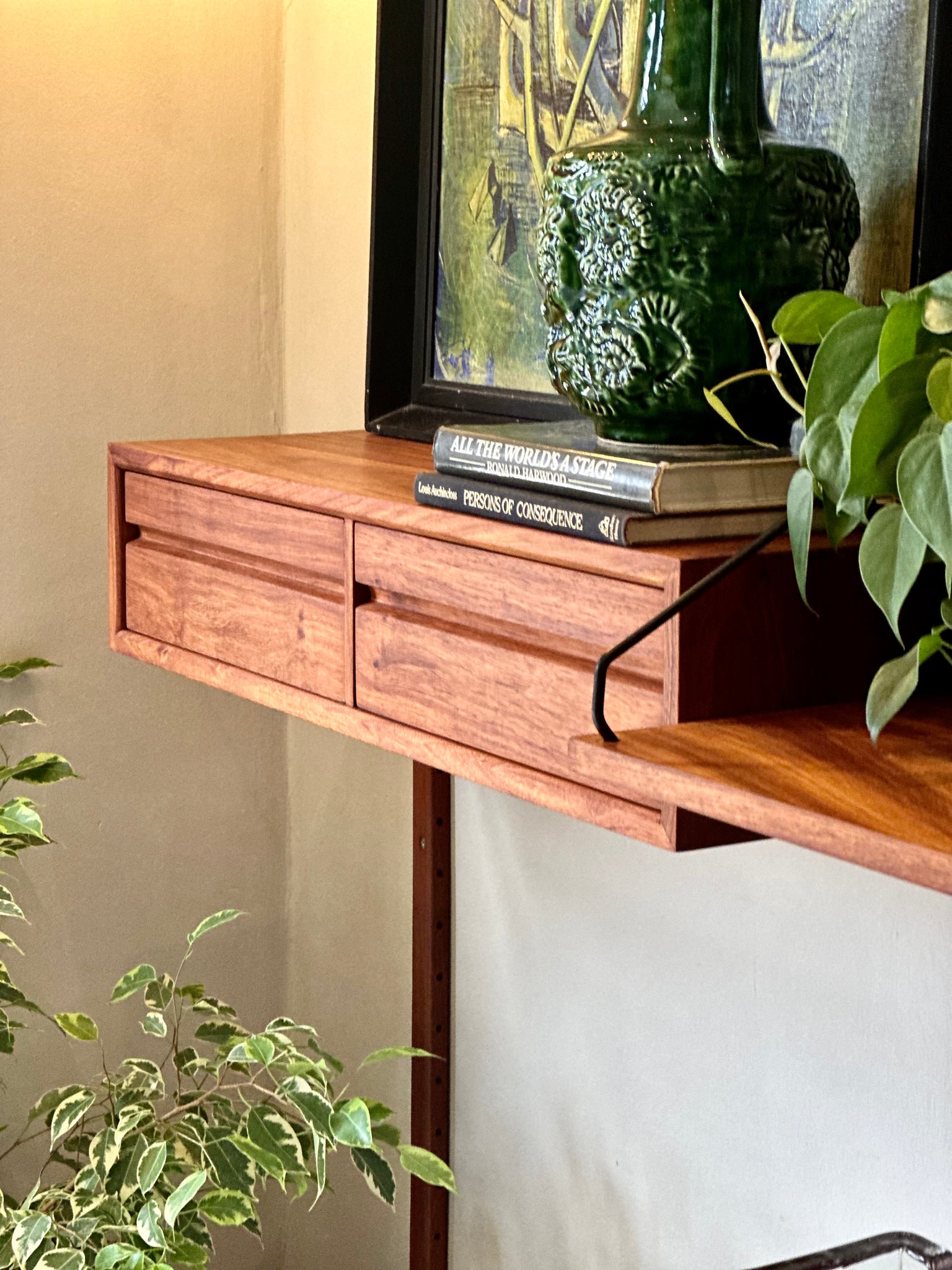 • Lip Shelf, to use as a desk or the two-drawer unit can be mounted lower and be used as a desk space.