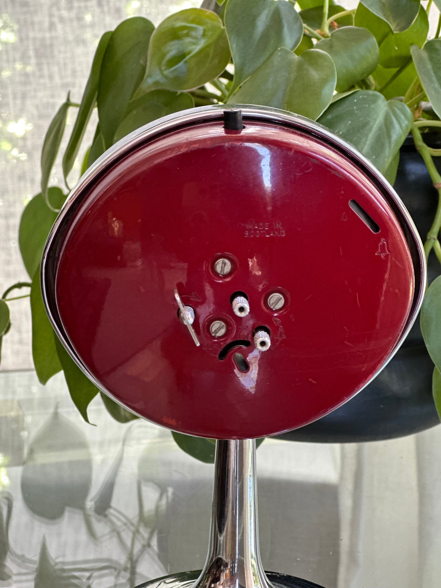 Westclox Big Ben repeater alarm clock from 1975 is a retro classic, featuring a chrome dial housed in a sleek red case. Its distinctive tulip-shaped design embodies 70s style, and the repeater function offers a convenient snooze feature. A highly collectible vintage timepiece, which blends both functionality and nostalgic charm.