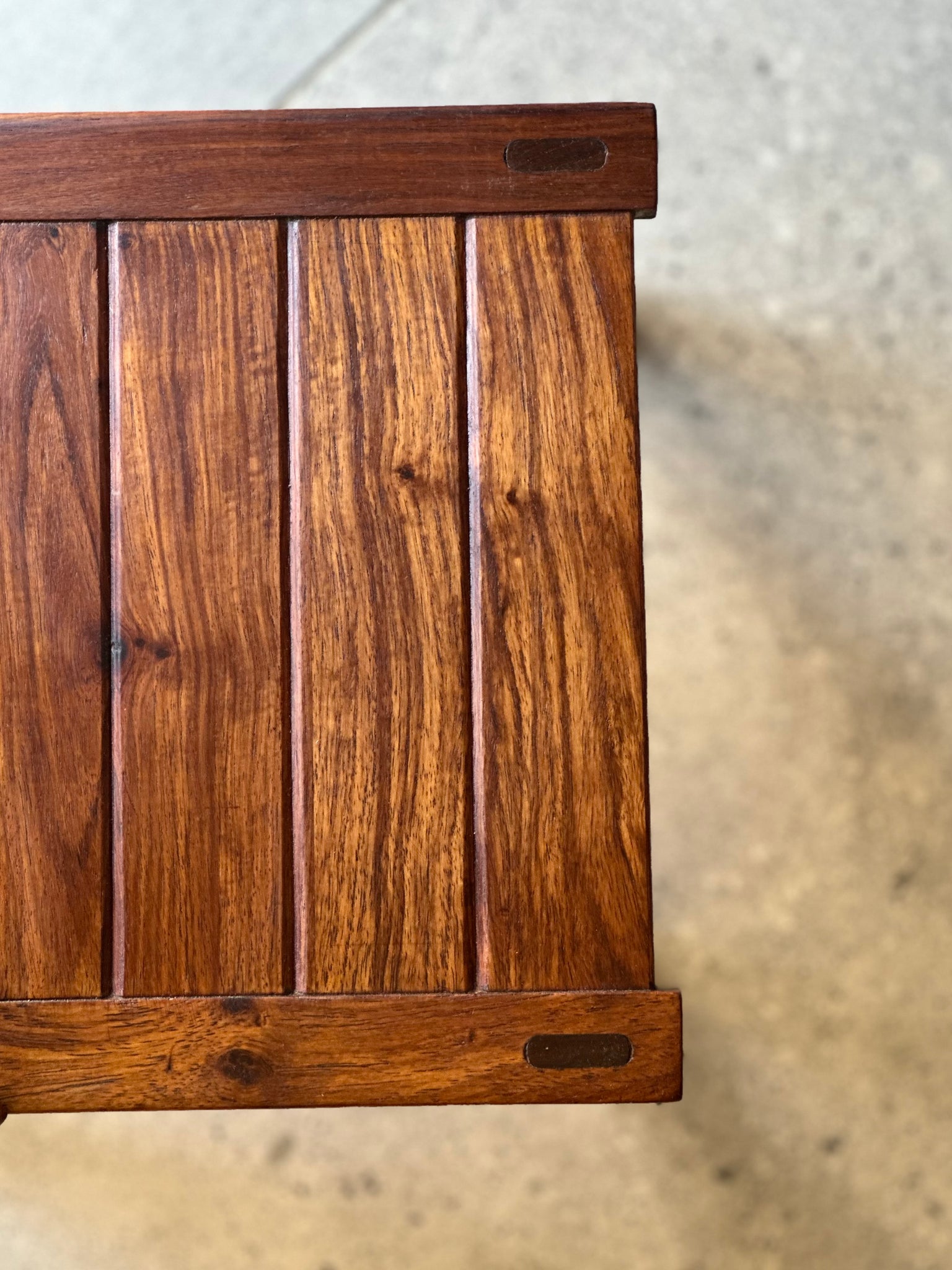 Kiaat Slatted Top - Kallenbach: A charming Mid-Century side table by Kallenbach, one of South Africa’s most respected modern furniture makers. Compact in form yet beautifully proportioned, each table features a distinctive slatted top — a hallmark of Kallenbach’s craftsmanship — offering both visual lightness and practical surface ventilation.