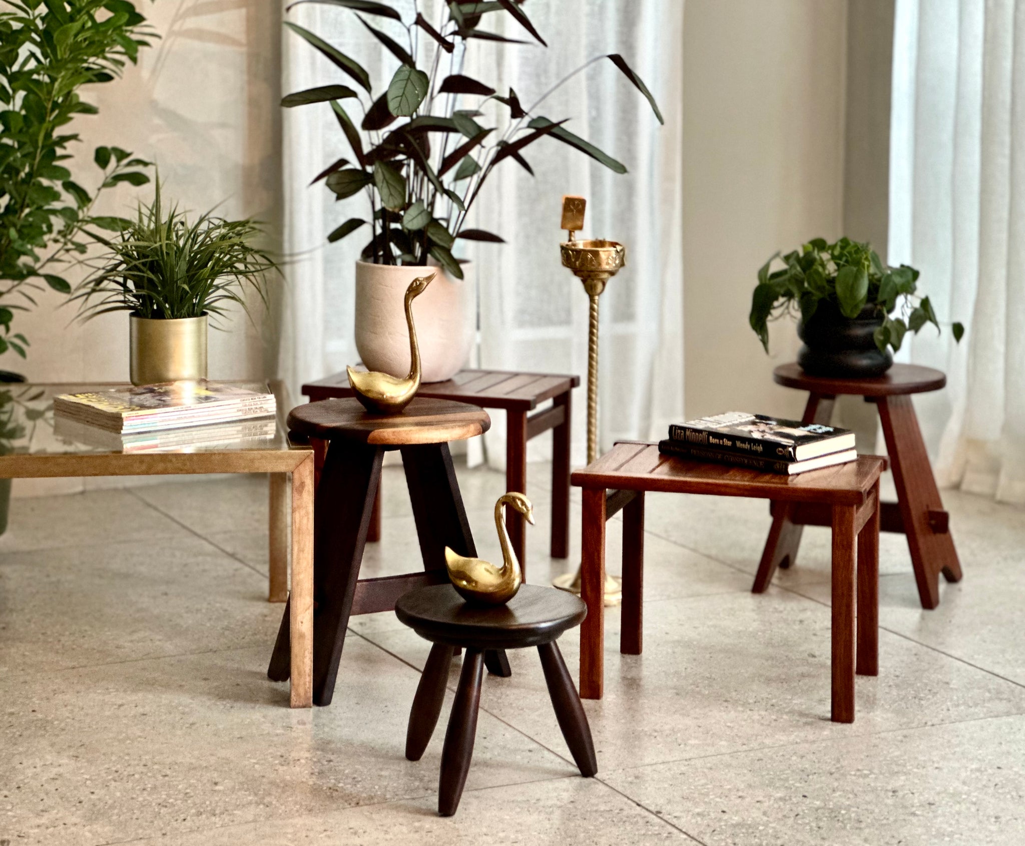 Crafted from richly toned hardwood, these tables embody simplicity and utility in perfect balance. Their small size makes them highly versatile, ideal as bedside companions, sofa-side surfaces, or display stands for books, plants, or art objects.