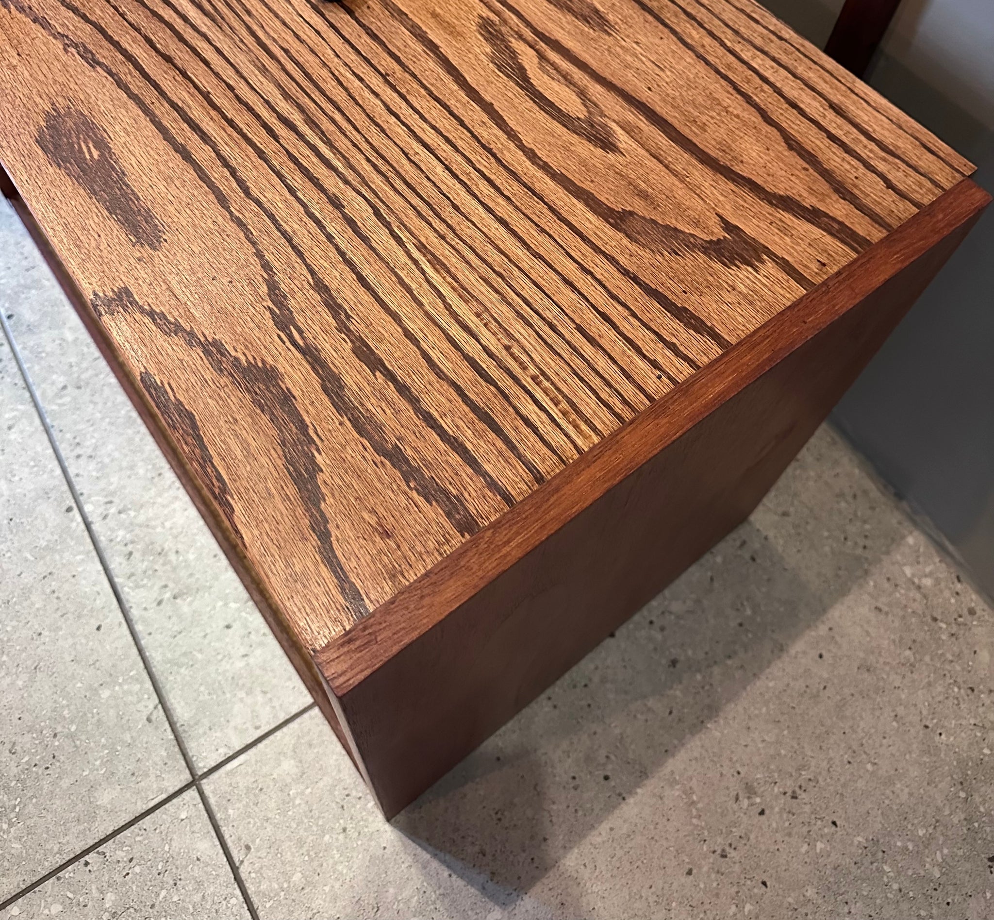 As with many Mid-Century pieces, this item features a thoughtful combination of solid wood and high-quality wood veneer. Veneer has a long and respected tradition in furniture making, valued for both its aesthetic and structural benefits. When crafted with skill and applied in substantial thickness, vintage veneer proves highly durable, allowing for careful restoration, including retouching, sanding, and refinishing without compromising the integrity of the piece.