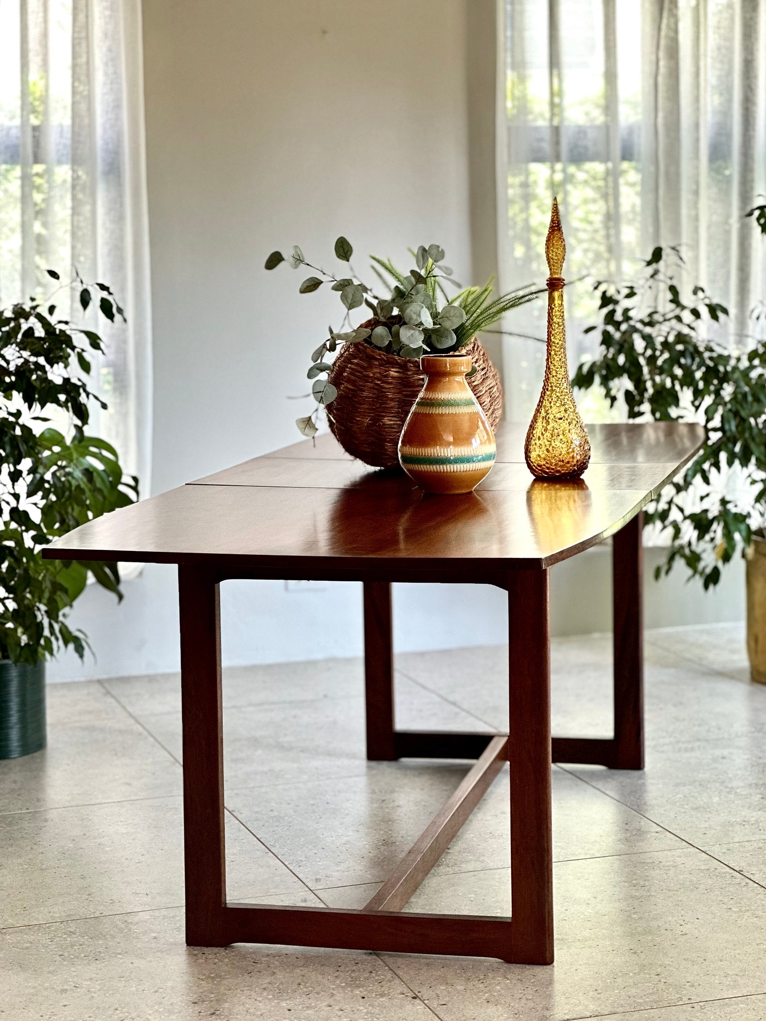 A balanced mid-century Imbuia extendable dining table. The design captures the essence of mid-century sophistication — sleek and minimal.