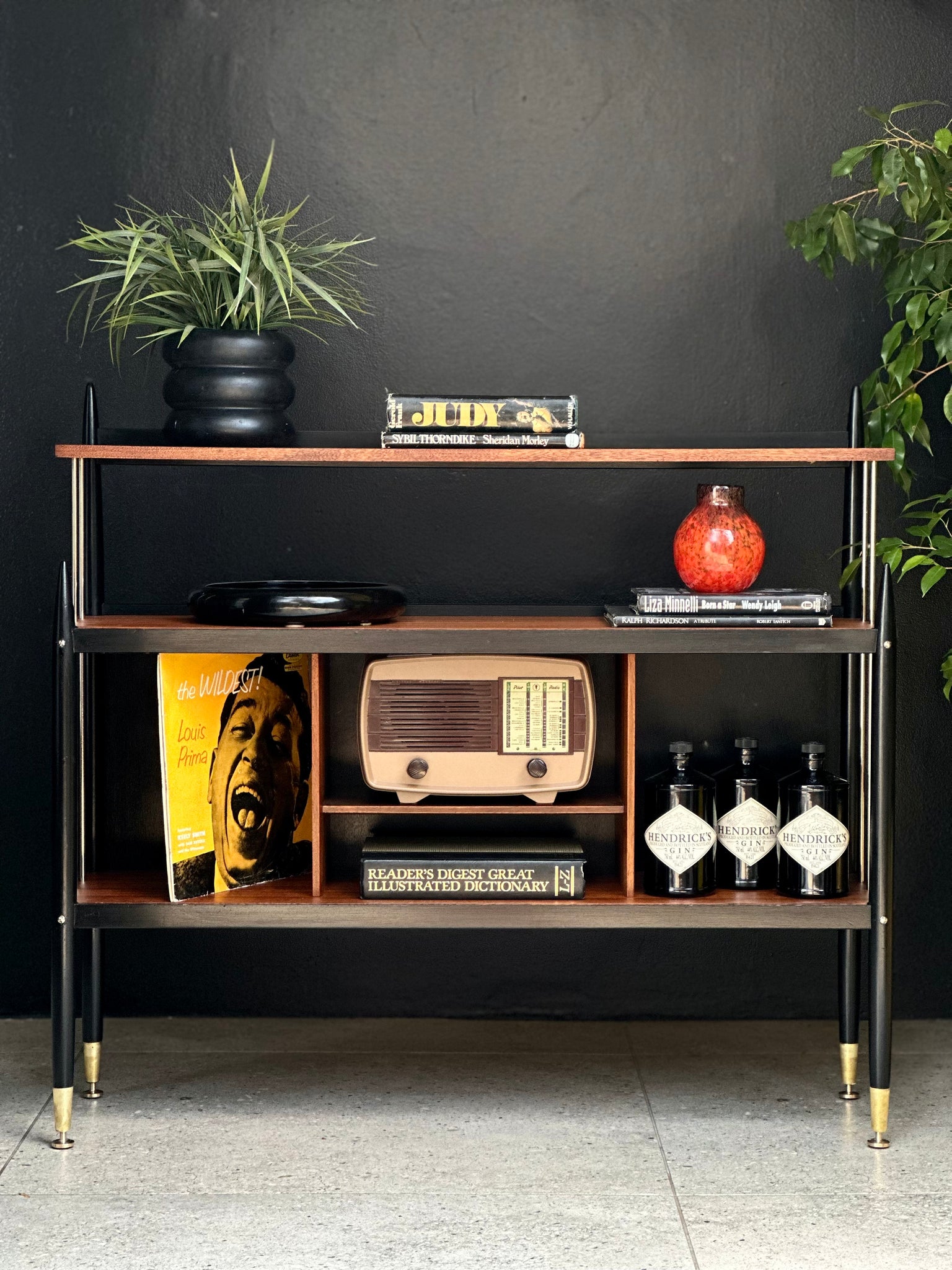 A rare & collectible G-Plan shelf unit from the late 1950s to mid-1960s, designed during the brand's iconic E. Gomme era from the Librenza range. Originally conceived it could have functioned as a compact record or radio stand. Today, it adapts effortlessly as a media unit, drinks station, or sculptural display shelf.