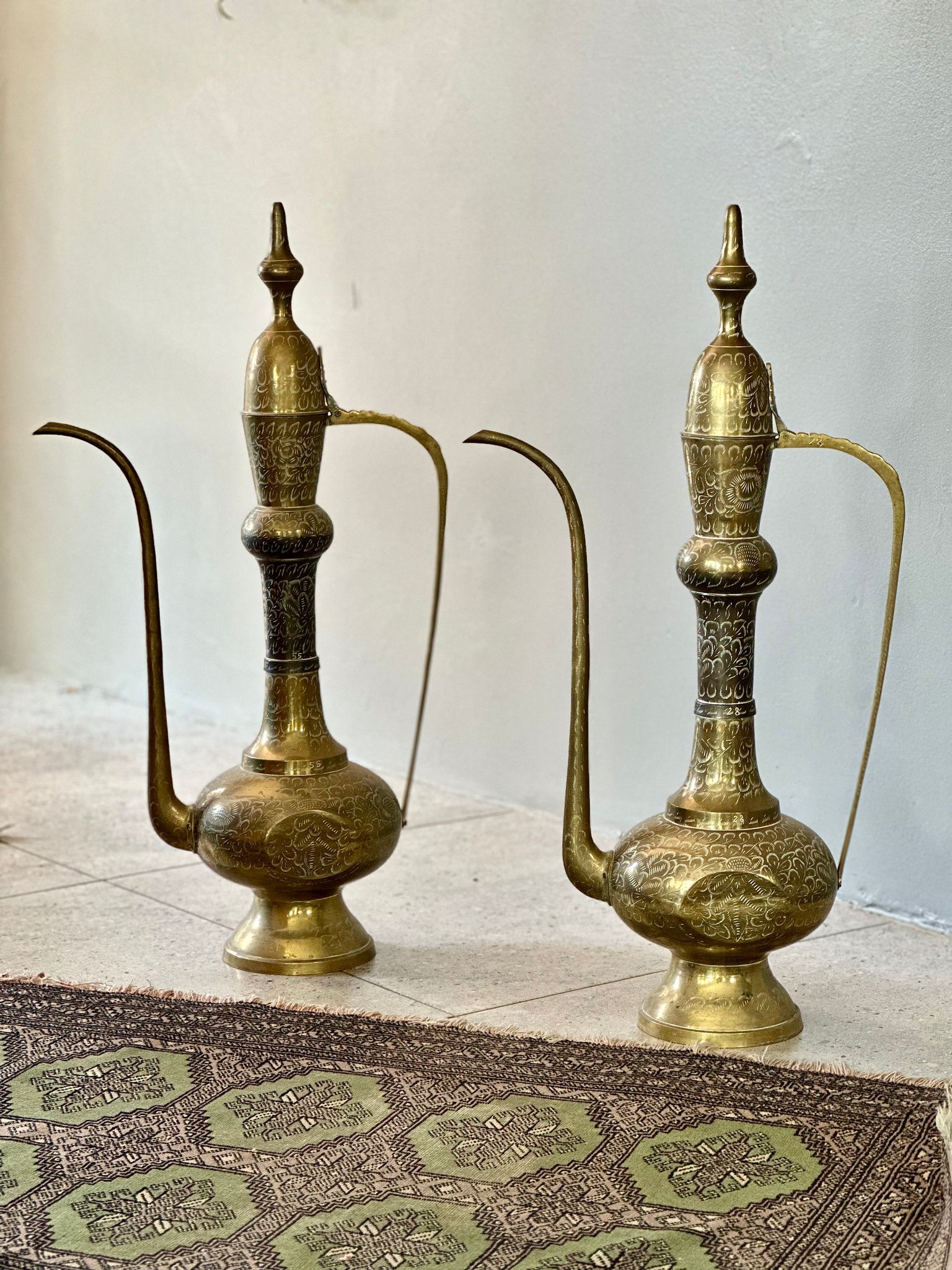 Once used for serving aromatic Arabic coffee, these brass coffee pots are now a stunning decorative piece, perfect for adding a touch of historical elegance to any space.