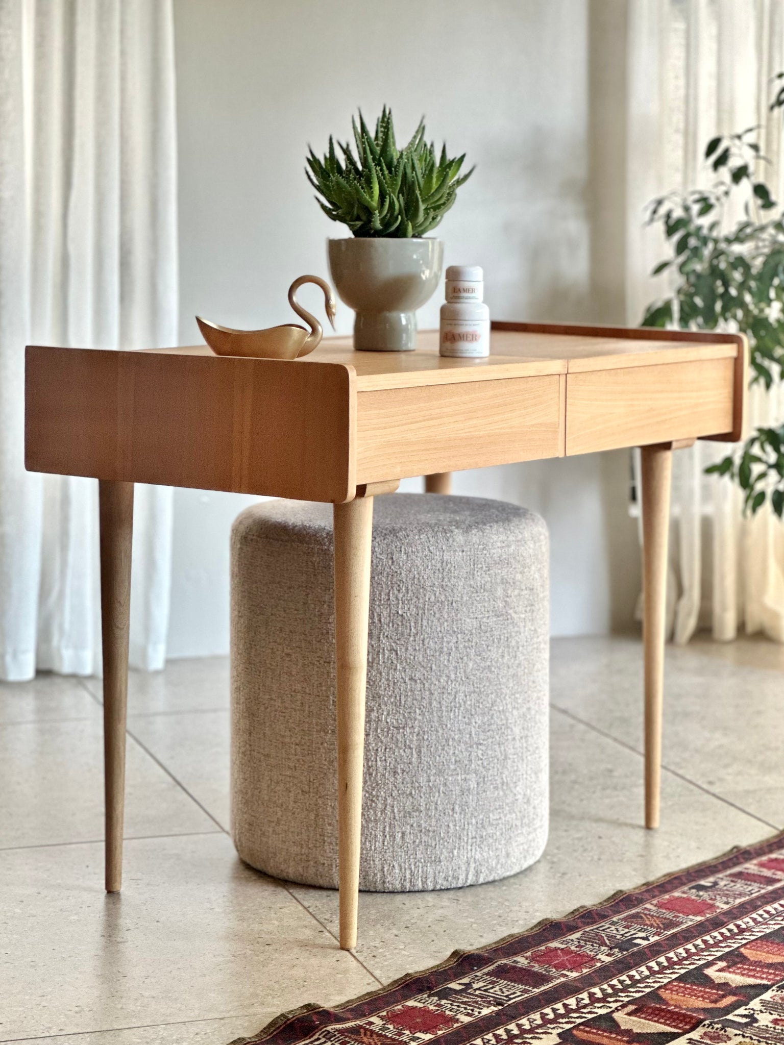 For a fresh, contemporary touch, this restored dresser is paired with a modern "Haus by Hertex" stool in “Ash”, featuring high-density foam cushioning for lasting comfort, a compact, versatile shape, and stylish textured upholstery in a sophisticated neutral tone. We’ve included this stool in the set at a price below its usual retail value of R2 800, offering even better overall value.