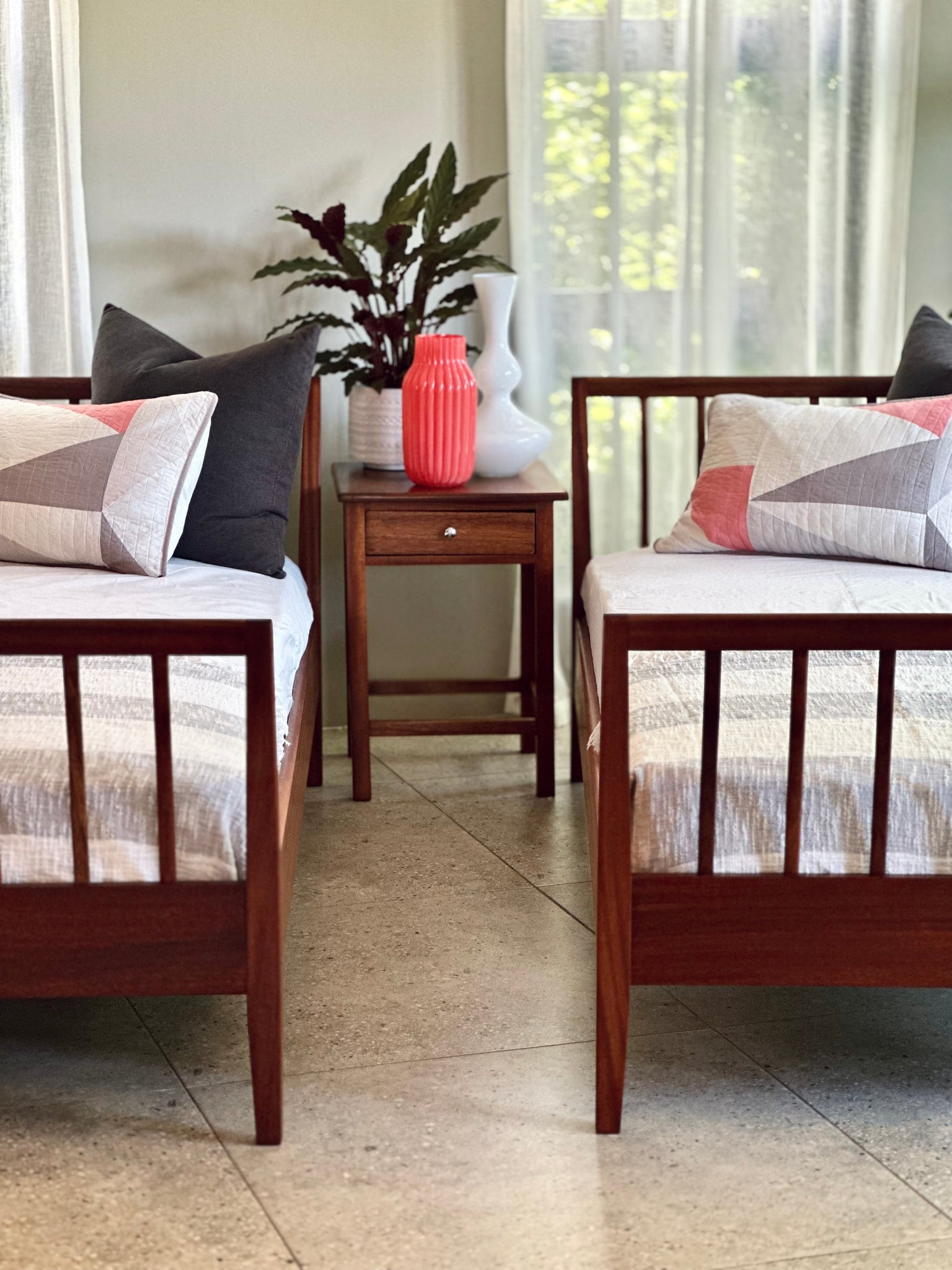 Whether used as a pair in a twin room, a stylish addition to an Airbnb or holiday home, or re-imagined as a standalone daybed in a living area or reading nook, this versatile design offers both comfort and aesthetic presence. Minimal and timeless.
