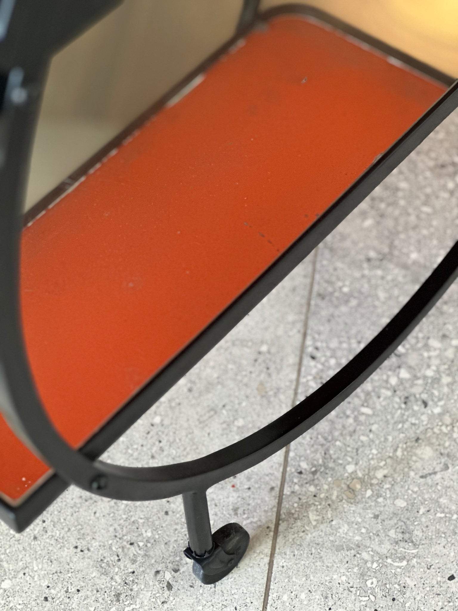 This trolley is in good condition, with slight signs of wear consistent with age and use, adding to its authentic vintage appeal. Original wheels intact and move, but do not "glide" across the floor with ease.