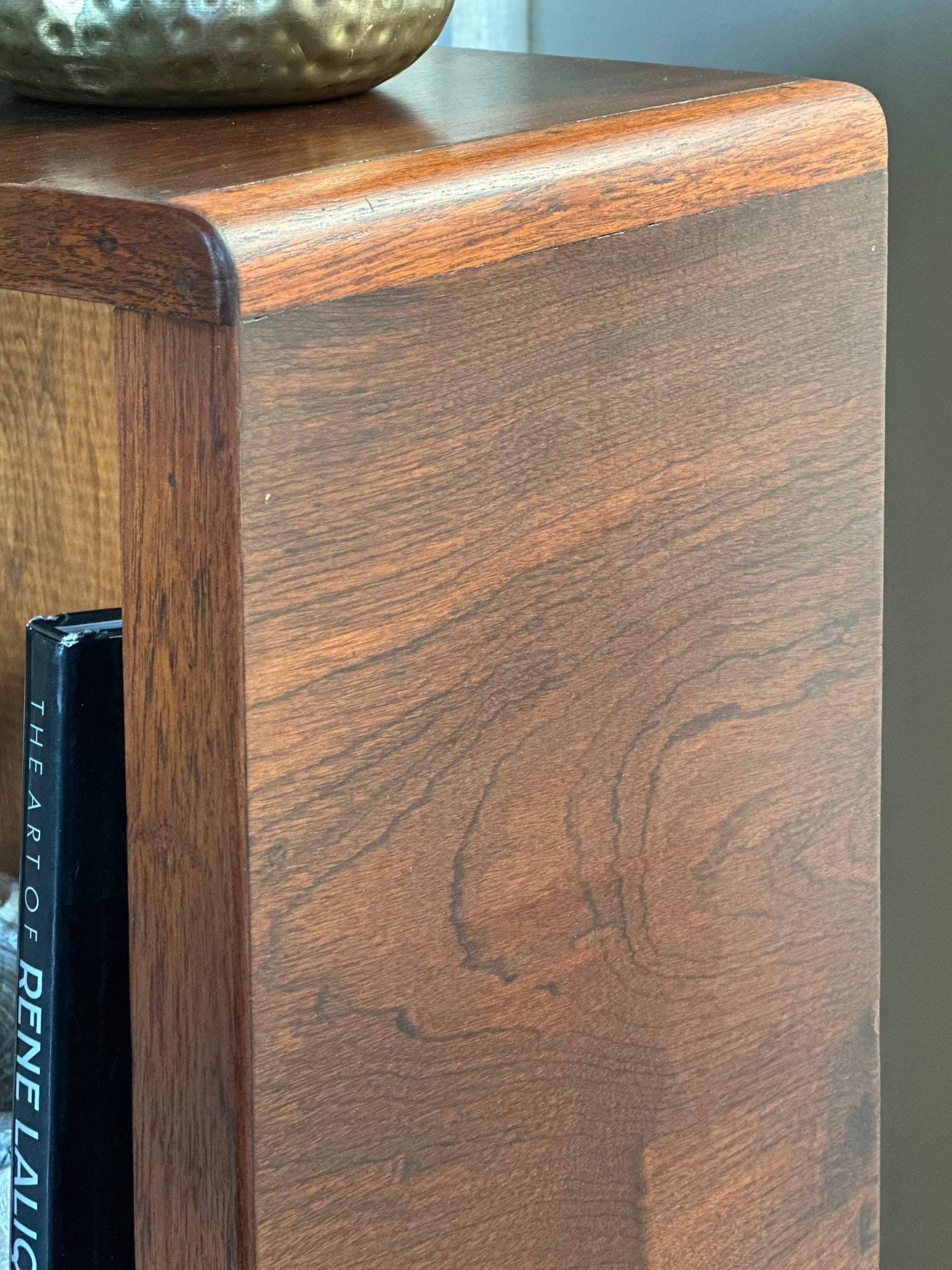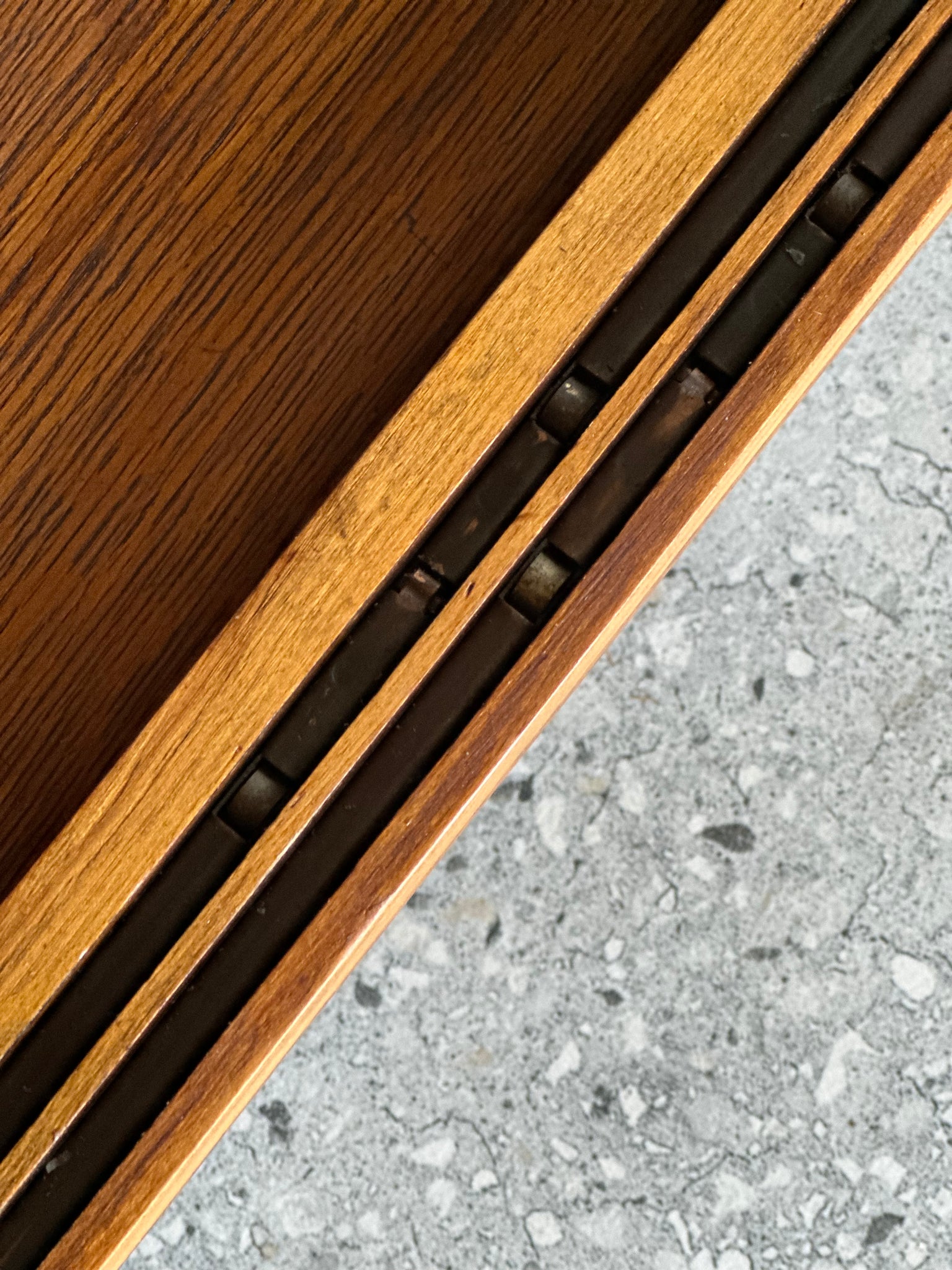 As with most Mid-Century pieces, it is a good combination of solid wood and a high-quality wood veneer. The history of veneer on furniture is a long and honorable tradition, and it depends on the veneer's artistry, condition, and thickness the quality of the old veneer was long-lasting; for this reason, it can be retouched or sanded and refinished.